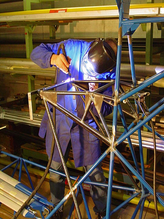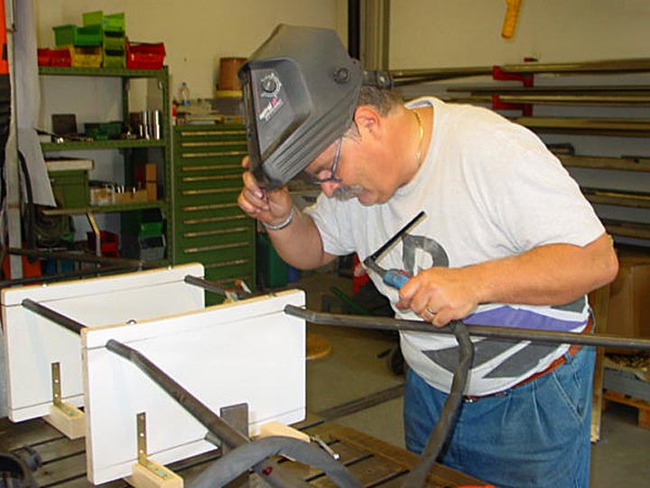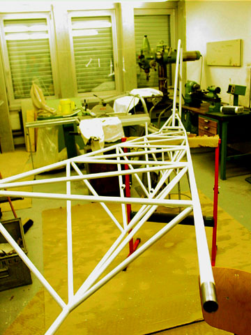 Der Bau begann in meiner Garage zu hause. Als die Teile grösser wurden, hatte ich das Glück im Materiallager meines Profi-Schweissers Karl Hediger weiter Arbeiten zu können.